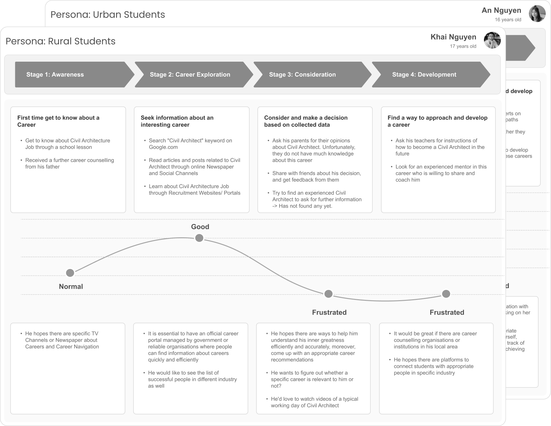 Southeast Asia, which includes 14 countries and a population of 675 million people, has seen one of the world's fastest-growing markets in recent years. Nevertheless, one of the most critical problems they are facing is Skill Mismatching. This problem is accounted as the major cause of the high unemployment rate and negative impacts on the economy. Although some schools in Southeast Asia offer career navigation events as part of their educational system, this traditional approach is inefficient and severely limited. As a consequence, many students have misconceptions about careers and prefer to apply for courses thatwill lead to high-paying jobs in the future, such as engineering, law, and medicine, rather than pursuing their dreams.