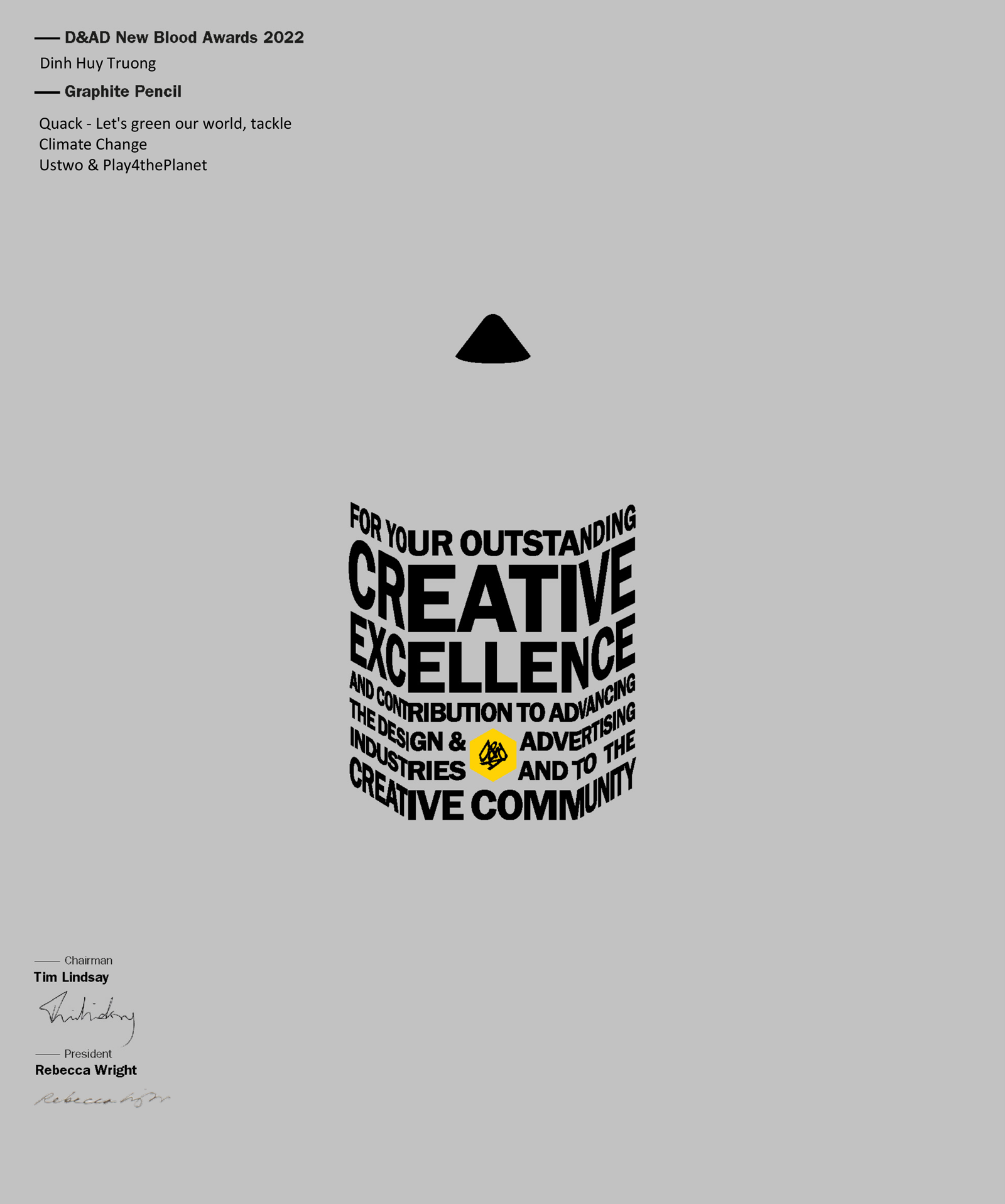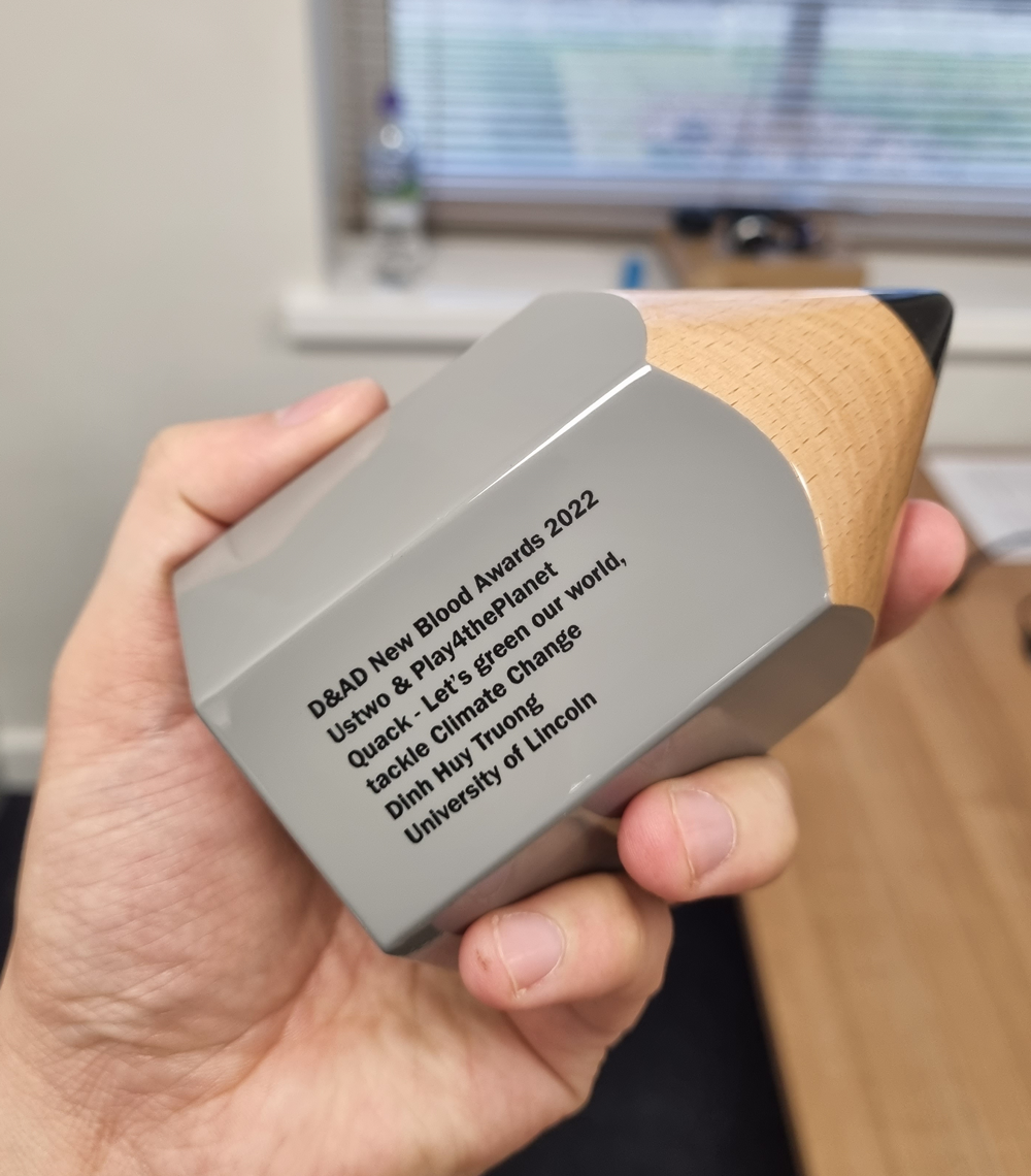 Quack was proudly awarded a Graphite Pencil (Silver Win) at the D&AD New Blood Awards 2022, recognising its creative excellence and impact in tackling climate change through game design.