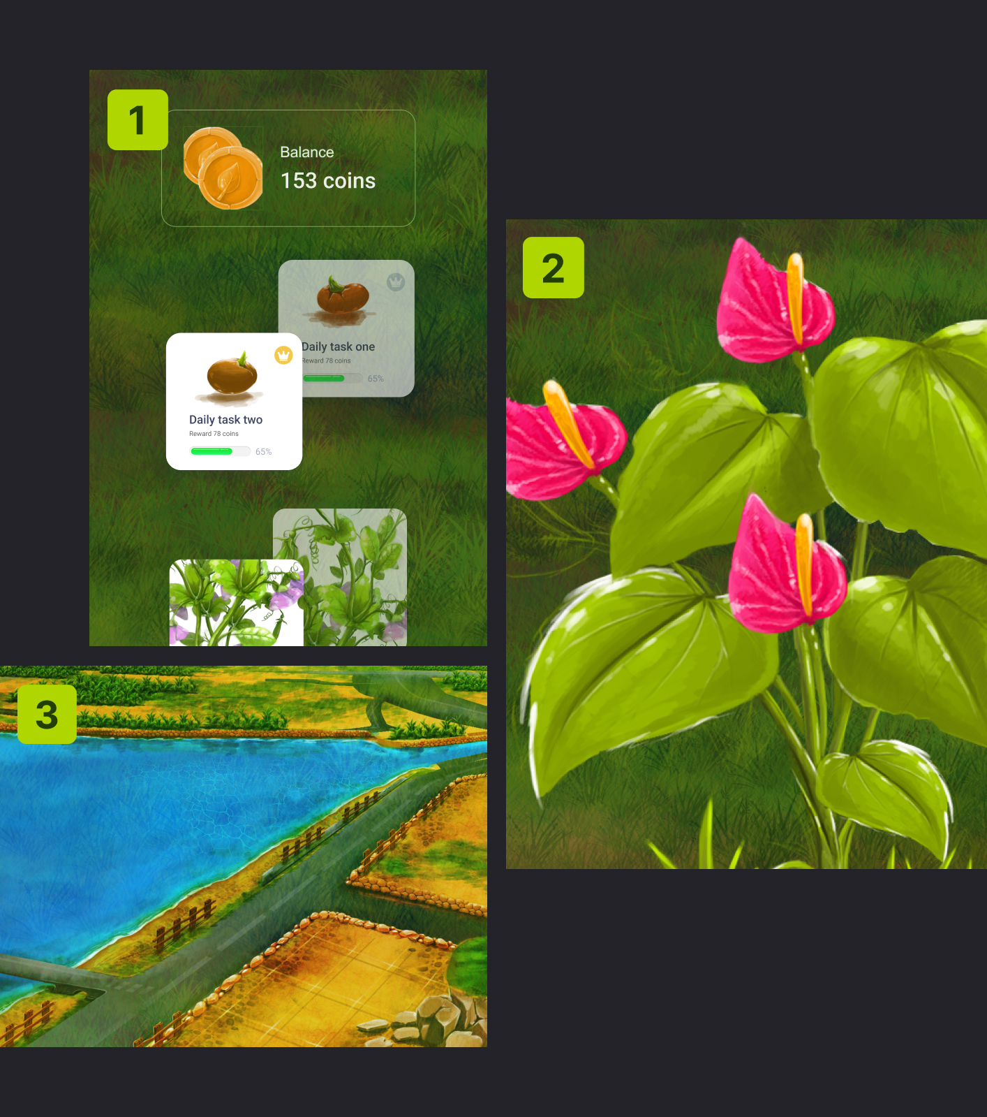 The gameplay of Quack focuses on tackling Climate Change by growing plants in the virtual world. In Quack’s World, the responsibility of players is to collect coins by completing environmental protection tasks. With collected coins, players can exchange plants from Quack’s shop. In the game, plants take an important role in purifying and cleaning players' local area by absorbing a certain Carbon Dioxide day by day. When a new level is achieved, players will get rewards correspondingly.